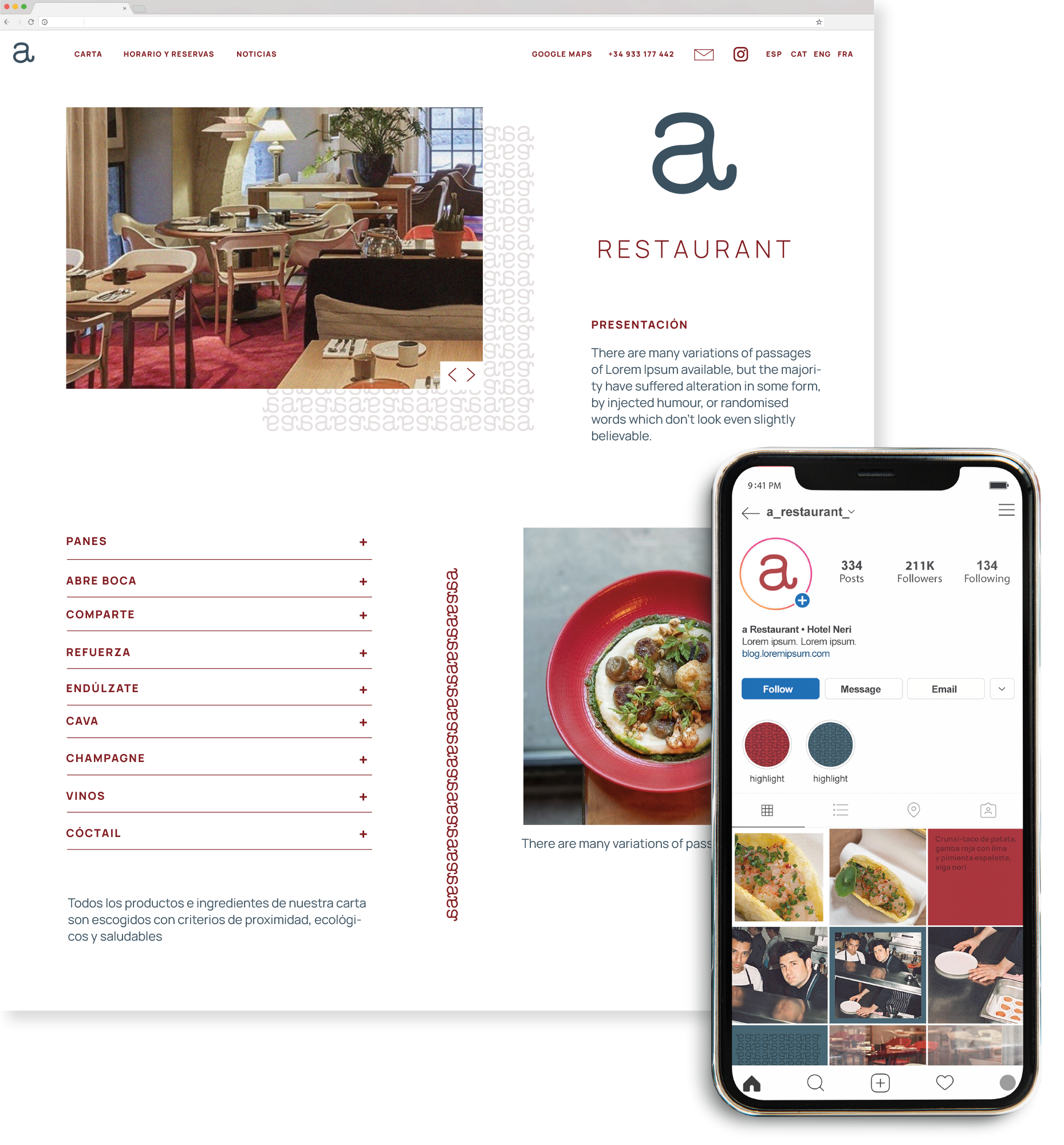 Amb la Marta Parera i l’equip de l’Hotel redefiniem la imatge de marca així com totes les peces físiques i digitals per a posar al dia gràficament el nou concepte i cuina del restaurant.